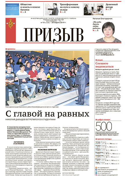 Газета «Призыв» №13 от 28 марта 2019 годаНовость