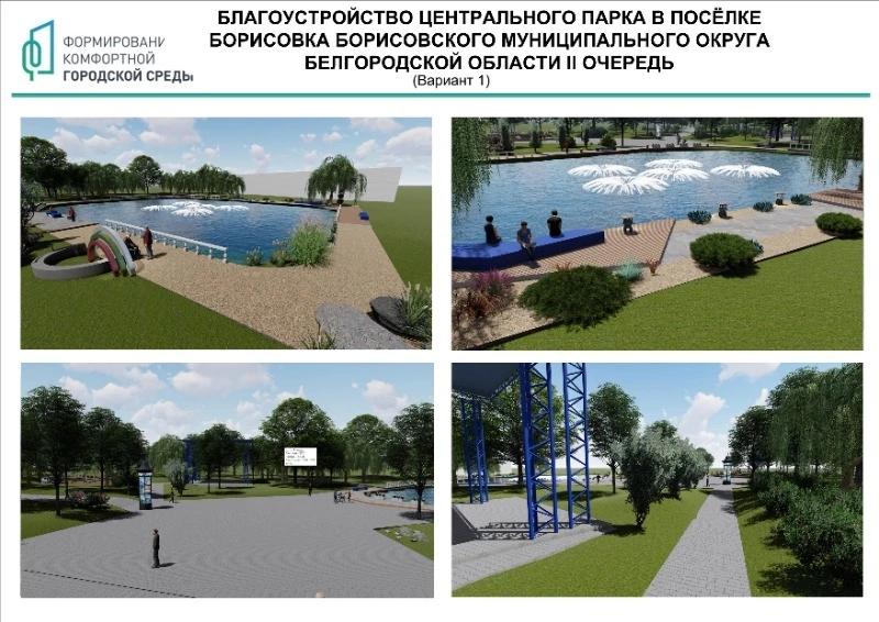 Также предложен проект благоустройства Сквера Памяти возле дома №61а по улице Советской в посёлке Борисовка. Необходимость работ связана с тем, что сейчас здесь нет комфортной зоны для отдыха и прогулок с детьми. Планируется обновить покрытие тротуарных дорожек, провести озеленение, установить скамейки и другие элементы благоустройства.